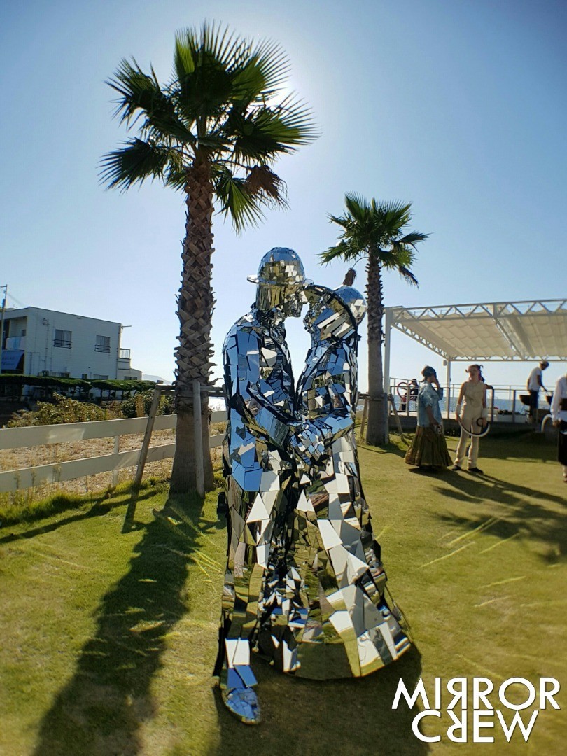 Ein elegantes und glänzendes Paar. Die Mirror Crew bringt ein einzigartiges und futuristisches Kostüm aus tausenden sorgfältig entworfenen Miniaturspiegeln, die in einem schillernden Tanz zusammenkommen. Eine symphonische Show von Bewegung, Licht, Farbe und Magie.